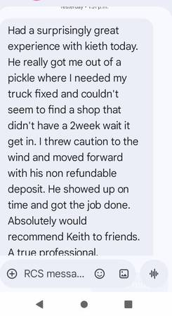 I work on everything from big trucks and heavy equipment to ATVs and cars . We also work on any type of RV and boats