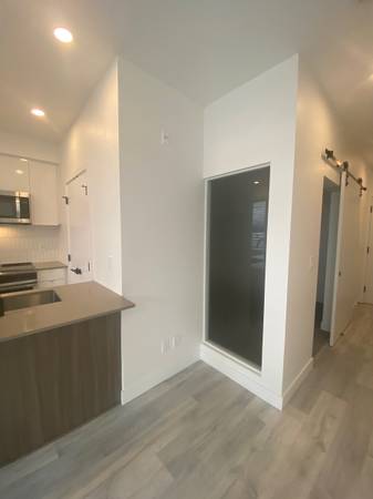 Bright with high ceilings and added bonus of a large 200 sq ft patio with views of mount baker.