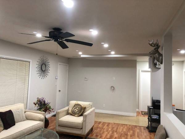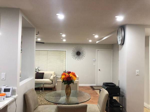 Bright living room with modern lighting