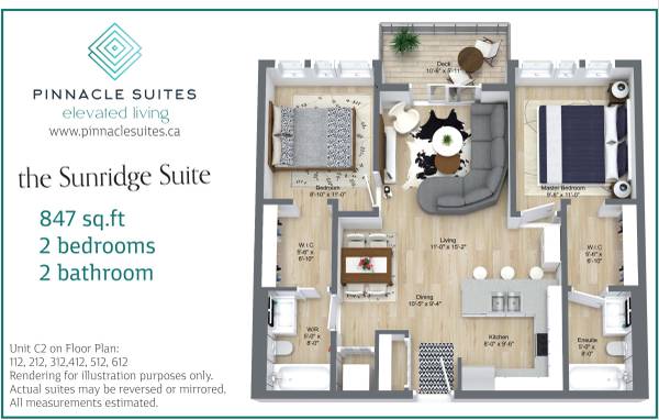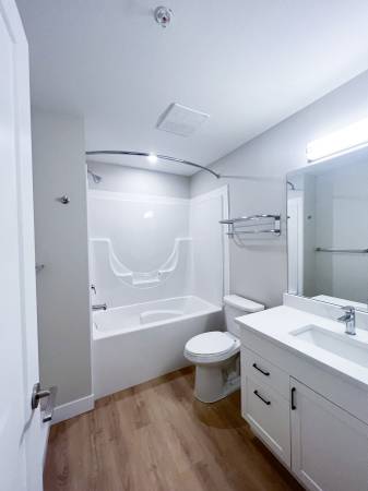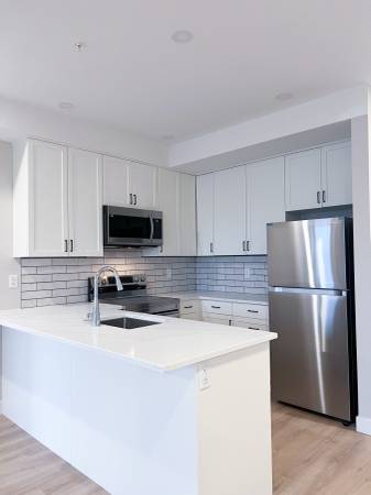 This bright and modern 2-bedroom, 2-bathroom suite offers 847 ft² of stylish living for just $1,750/month. Located in a pet-friendly building, cats are welcome, and dogs are permitted only in ground-floor suites.