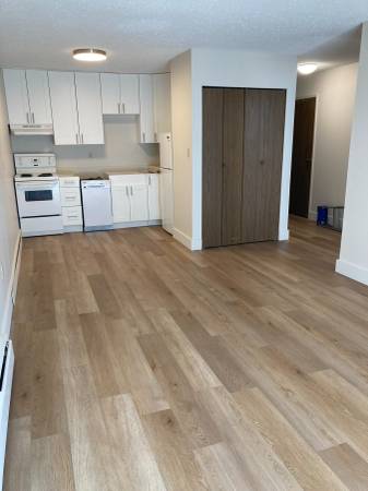 Bright, 2nd floor suite with open concept kitchen and living area. The suite was recently renovated, with new kitchen cabinets, bathroom vanity, and flooring. It has a covered balcony in a quiet, well-maintained building. It is walking distance from restaurants, groceries, recreation and much more.