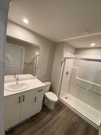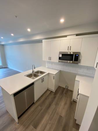 Some of the finer details include: modern colors, sleek trim, timeless finishes, vinyl plank flooring, LED lighting and decora switches. Kitchen features white cabinetry with black handles, a tile backsplash, and stainless steel appliances. Also comes with in-suite laundry for added convenience, tub/shower unit, high ceiling, private balcony with beautiful views and large windows.