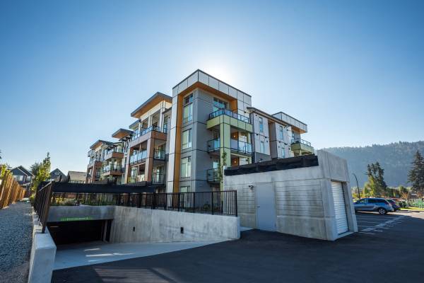This new, large, luxury 2 BEDROOM/2 BATHROOM corner unit boasts modern finishings, stainless steel appliances, full-sized in-suite laundry, quartz countertops, floating bathroom cabinets, glass enclosed ensuite showers, a private balcony, an in-suite storage room, is located across the street from beautiful Webster Park, and minutes from the Vedder River trails! It also has north-facing windows.