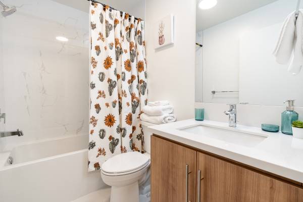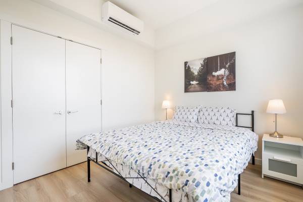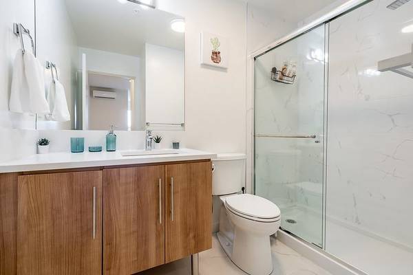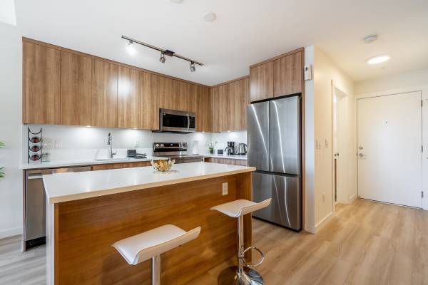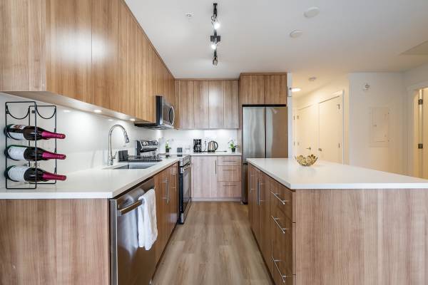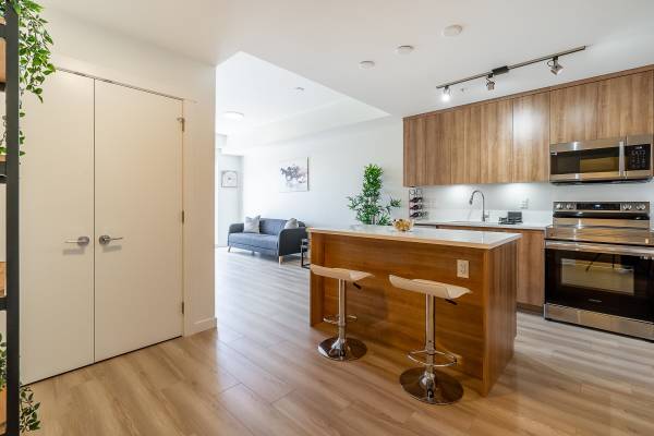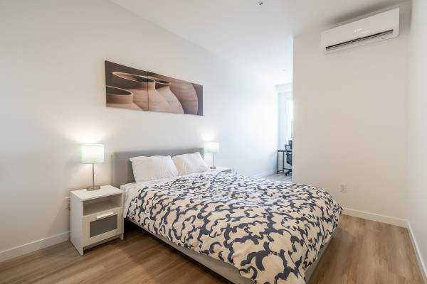 The unit - two bedroom + 2 bath, Spacious and Brand new unit (870sqft), Bright, Balcony and modern finishing, laminate flooring, includes brand new appliances (fridge, stove, dishwasher, microwave, washer/dryer), Air conditioning, 1 underground parking stall and 1 Storage Locker No smoking.