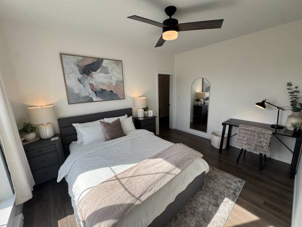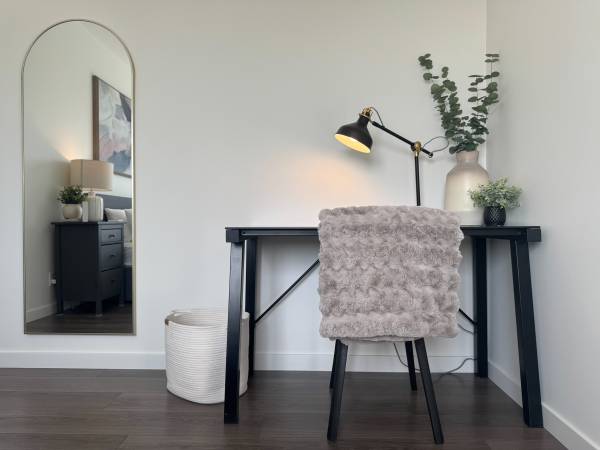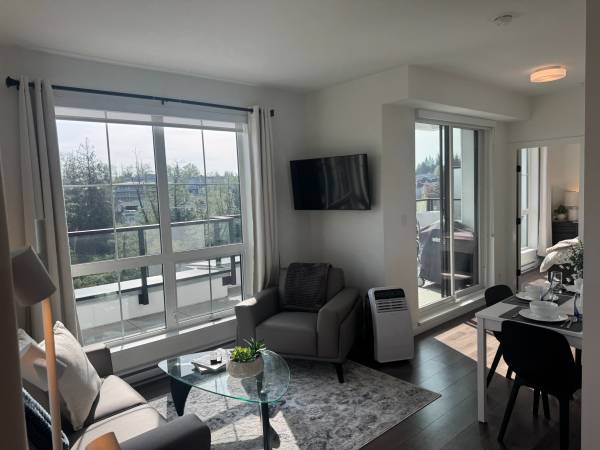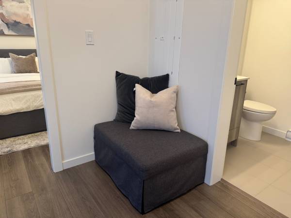 This beautifully furnished space is perfect for a business couple (queen bed + pull-out single bed) desiring a new location, or 2 working students needing easy access to transit or the Langley area.