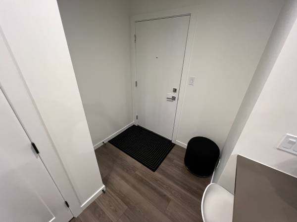 This stunning unit also has 9' ceilings, white shaker cabinets with contemporary black plumbing fixture accents, an EV parking stall charging option, is AC ready, and underground parking.