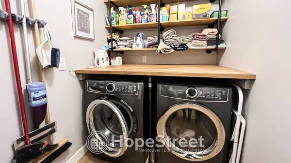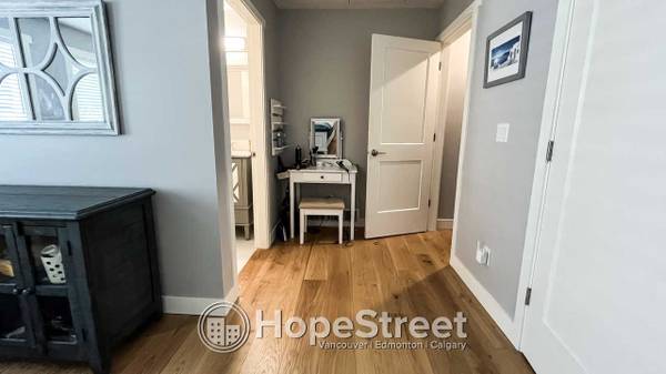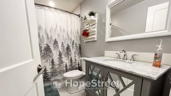 The primary bedroom includes an ensuite and walk-in closet, while two additional bedrooms share a full bathroom. The former garage has been professionally converted into a spacious fourth bedroom with its own ensuite, making it perfect for guests or multi-generational living. Please note: there is no garage parking. Parking is outdoor only.