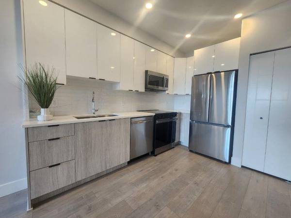 ▸Kitchen with full-size stainless-steel appliances, quartz countertops, under counter lighting