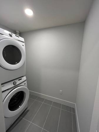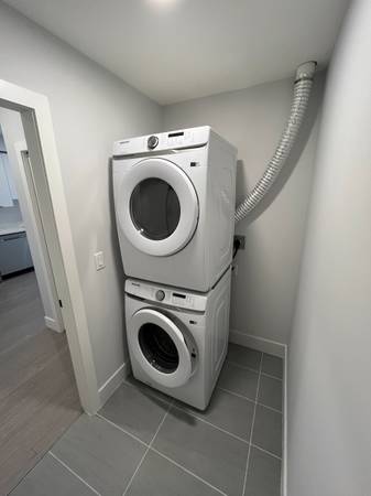Step inside and feel instantly at ease. The soft grey laminate flooring flows seamlessly into a modern kitchen with coordinating cabinets, creating a clean and cohesive look. A full-size washer and dryer make laundry days effortless, and the generous closet space keeps your home tidy and organized.