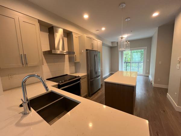 A Spacious Family Oriented 3 Bedroom Townhome at Gabriola Park Located in the heart of Willoughby Heights. An exceptional location, backing onto a lush GREENBELT enjoying maximum privacy and tranquility. A well-maintained unit with bedrooms that are all generously sized. Complete with a double Tandem garage and easy access to schools, parks, and malls within walking distance. Relaxation and convenience in this exceptional location!