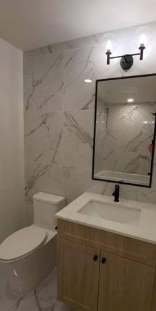 Modern kitchen with quartz countertops, stainless steel appliances, and sleek cabinetry