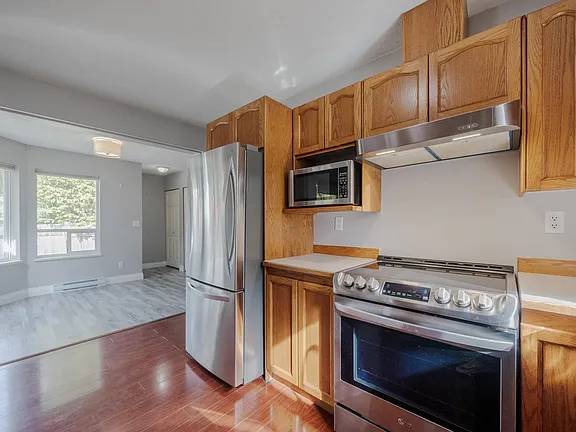 Fully Renovated home at Garibaldi Village is move in ready with 1 Bedroom , 1 Bathroom and great patio areas for enjoying the outdoors! This spacious Modular home has so many newer updates such as: stainless steel kitchen appliance, washer & dryer, vinyl siding, gutters, back deck, all baseboard heaters, trim and blinds, energy efficient gas fireplace which heats up the home, new painting throughout, all Pex piping & braided lines
