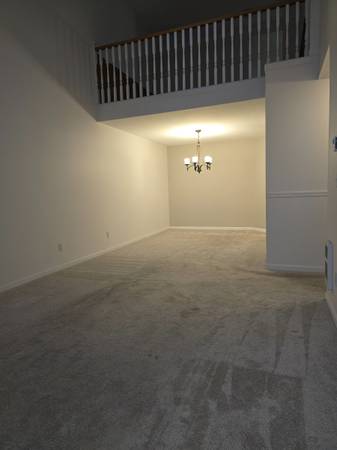 Large living and dining area with vaulted ceilings