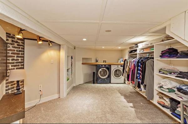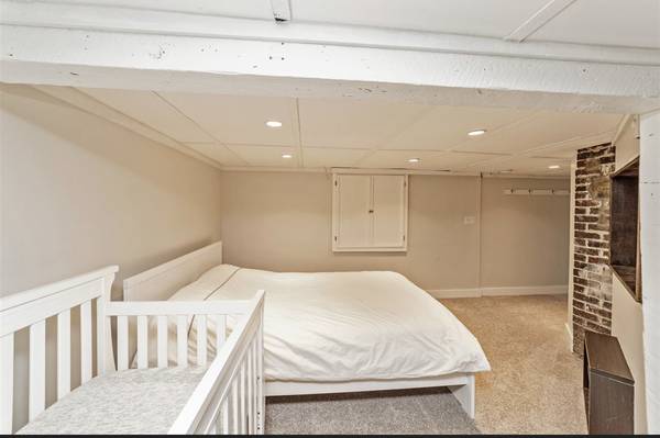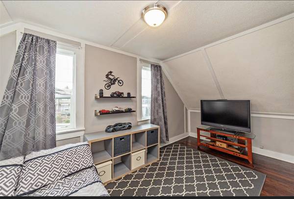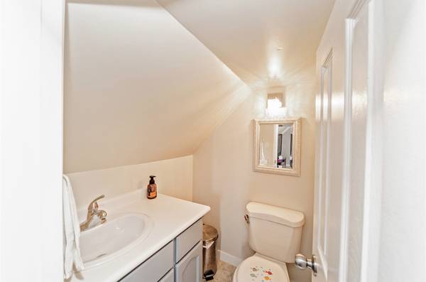 The house features a white kitchen with concrete counters & and island with a live edge wood counter. Upstairs are two good sized bedrooms nestled in the A-frame roof, with a European style ensuite off the master bedroom. Fully finished basement with laundry and storage. 2 big