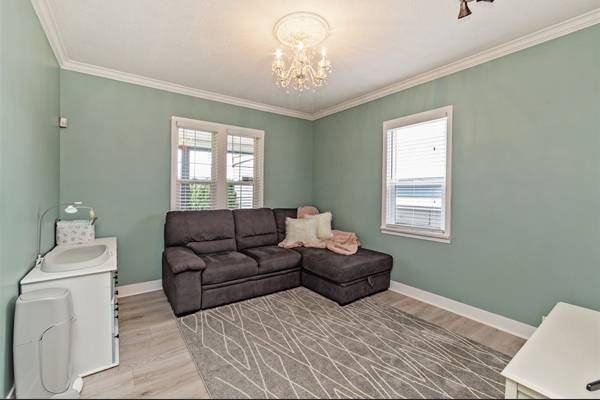 Garden beds are in the backyard along with an irrigation system for the grass and hedges. A beautiful ground level deck with awning just outside the dining room. A short walk to downtown Mission.