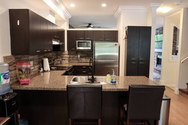 This 3-story townhouse offers ample space and comfort, featuring a two-car garage, a security system and in-built vacuum. Enjoy modern amenities like in-suite laundry, stainless steel kitchen appliances, garburator, microwave, gas fireplace and an installed alarm system. The master bedroom boasts a convenient walk-in closet, a large on-suite with double sinks and separate toilet/bath/shower room. The three upper bedrooms enjoys cooling on those warm summer days by ceiling fans. Located in the the desirable Clayton Heights community, this townhouse is nestled among 38 similar homes, creating a private vibrant, safe and convenient neighborhood. Situated close to all services and amenities, Blaine WA., Delta, South Surrey and Vancouver, this townhome is perfectly positioned in the heart of bustling city life. Public and private schools are nearby, and bus transit is right at your doorstep for easy commuting. The rent includes garbage collection and yard maintenance.