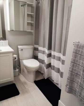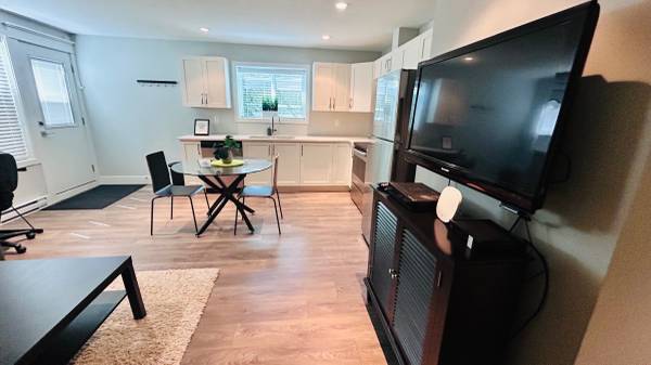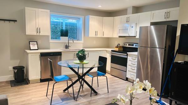 Spacious and bright 700 sq ft basement suite with private entrance featuring quarts counter tops, soaker tub, hardwood floors and brand new furniture.