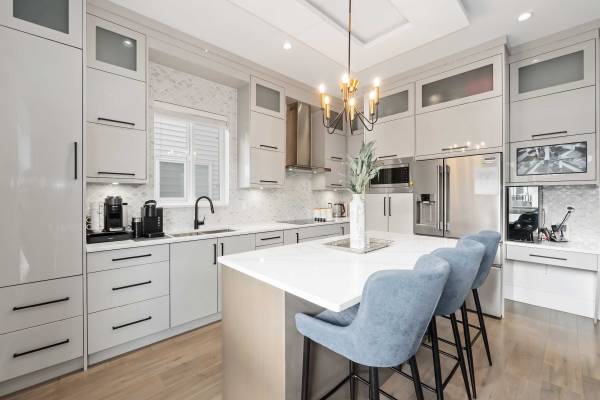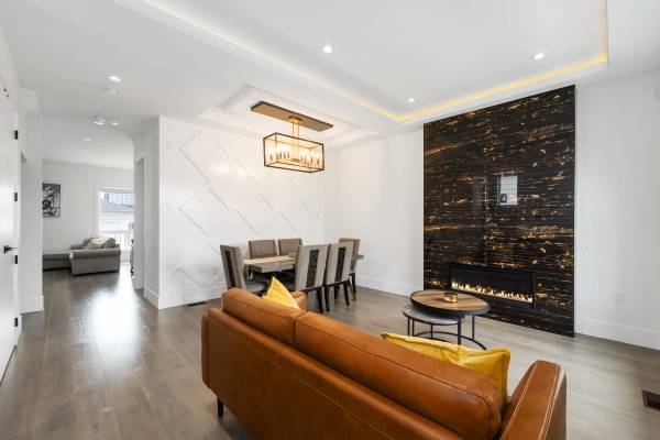 This stunning, like-new 3-level home in Clayton's most desirable area offers the perfect mix of style and function. With 4 spacious bedrooms and 3 full baths upstairs, plus a gourmet kitchen with a Wok Kitchen, it's designed for both luxury and everyday living. High ceilings and extra-large windows flood the space with natural light, while thoughtful touches like a gas and electric fireplace, security system, built-in vacuum, security systems and central air conditioning add comfort. Private facing greenbelt with no houses directly in front! Conveniently located near top schools, skytrain development, major highways, and premier shopping.