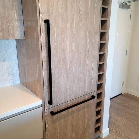Ensuite heated flooring, Bosch kitchen appliances, natural gas heating and air conditioning included 1109 sqft.