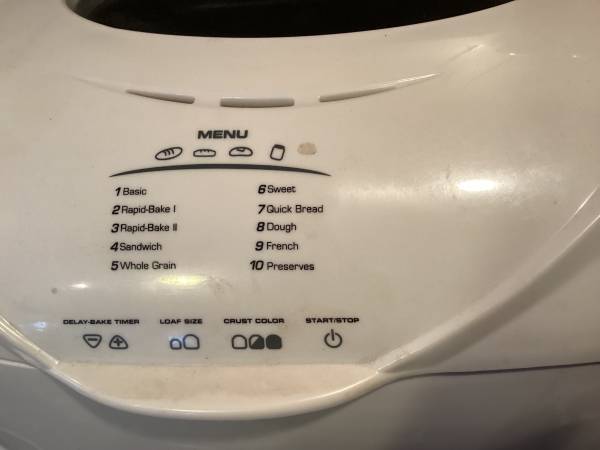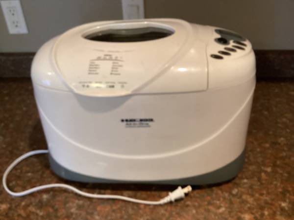 Black & Decker All-in-One Breadmaker Makes horiz loaf. Has two mixing paddles. No email or texts, don’t have cellphone please phone Roland.