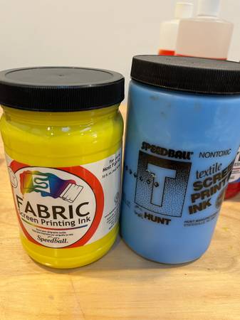 Selling all 5 NEW speedball screen printing ink, Process Yellow, Process Cyan, Process Magenta. White and Black 32oz. I have multiples of Black, Yellow and Blue.