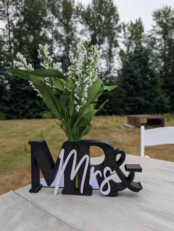 Brand new Mr & Mrs Wedding table signs Available in any color combo! They have a hole that can hold some fake flowers, pen, etc. Fully 3D printed and made to last! Measuring 9.8" x 4.5" $10...