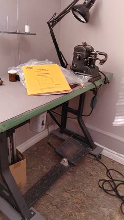 This machine does work but as you can see it should be serviced. May be a Model B, over 100 years old. It does not have any more needles, they can be ordered thru Bonis website. Comes with a table,...