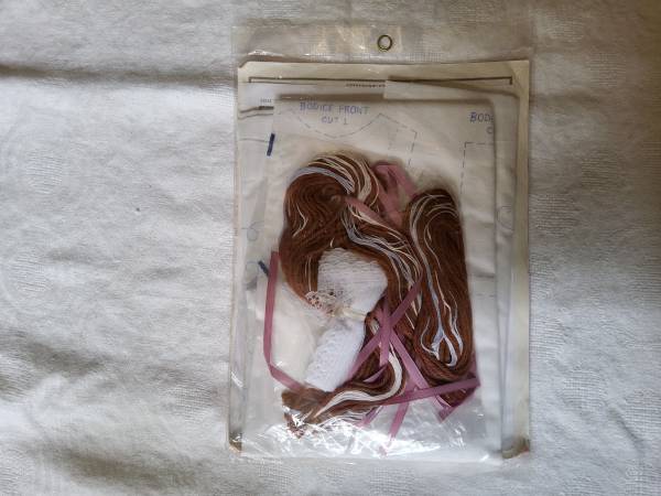 The kit is from the 1970s and is a sewing project that requires a "touch of embroidery".
