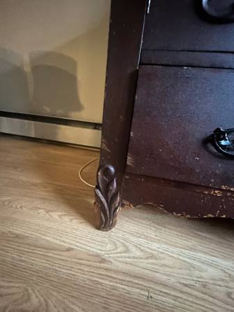 Condition: Structurally solid and fully functional. Dovetail drawers. Has wear, scratches, and finish imperfections from age (see photos). Hardware is mixed. Mirror is intact. Fine as-is for a vintage look or a great restoration project.