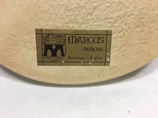 Marcus Designs were the concept of David Morton who lived in Bottesford in Leicestershire England and made decorative plaques mainly of medieval design from the late 1960's -till sometime in the 80's.