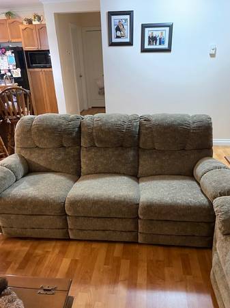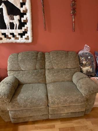 Reclining 3 seat couch with matching reclining Love seat. Excellent condition. Available separately or as a set.