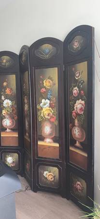 Add a touch of vintage charm to your space with this decorative four-panel painted screen. The screen features hand-painted floral designs on a black/dark brown background, making it a unique...