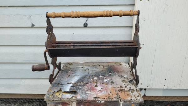 Selling my antique news paper roller . This unit was used to roll news papers into fire place logs . Good display piece for man cave or whatever you like