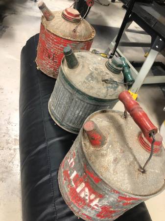 Galvanized steel gallon fuel cans, three of. $10 each. Not rusted.
