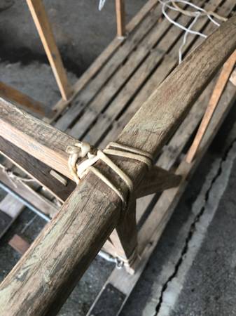 #340 – Dog Sled – Iditarod $2500.00 Authentic Iditarod dog sled. Held together with original sinew. In beautiful condition. Check out my Instagram @ bcfilmprops Call or text Al @
