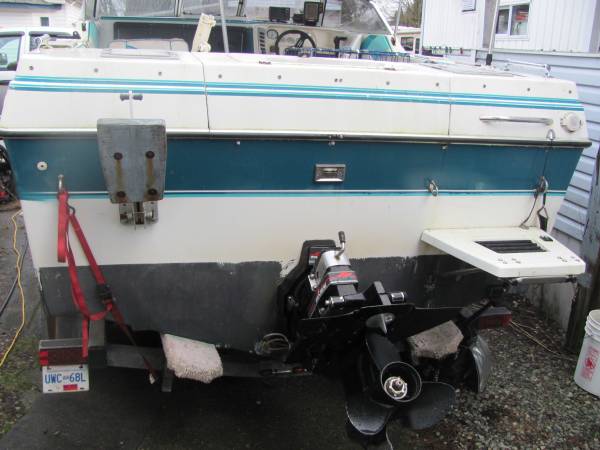 It has a new 4.3 engine with 50 hours on it. The leg has been serviced. Winterized at the moment. Has new upholstery in the main deck area . Comes with a full top.