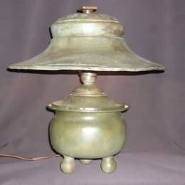This Antique lamp was made in Russia sometime during the turn of the 20th century ( mid 1800's to 1910 approx.). Made in the city of Tula, same place Samovars are made. That is all the info. I have on this unusual lamp. It is working. Condition fair, a few dents here and there but to be expected, over a 100 years old. Has a wonderful glow when lite.