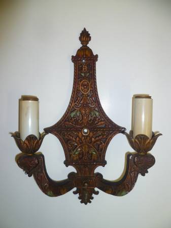 -Superb twin arm ornate wall sconce, by Art Kast co; 10” x 7.5” $65.