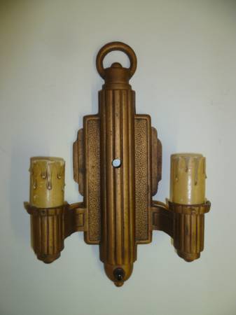-Twin arm Art Deco cast wall sconce, by Electrolier Meg Co.; 11.75 x 8”. $85.