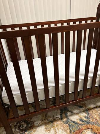 Wood crib converts to toddler bed. Solid construction and in great condition. Mattress is like new. Used only for grandchildren's visits.