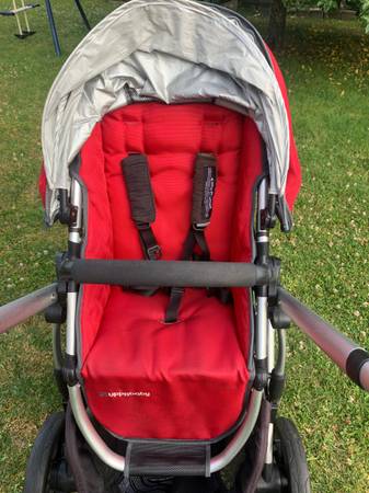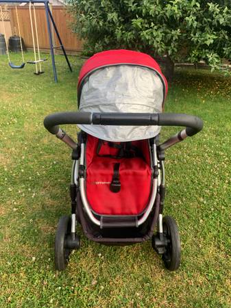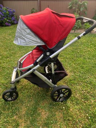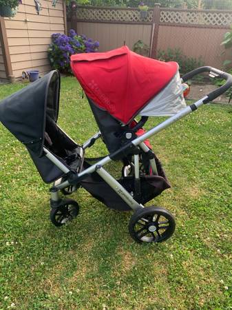 (originally cost over $1000) UPPABABY VISTA STROLLER, with second seat to make it a double stroller, good condition, super clean, has a few stains that didn’t come out, smoke free household, main seat can face forward or rear, and has multiple recline positions, handle bar and foot rest are also adjustable, large storage area under seat, and small storage behind seat, huge sun canopy with peakaboo viewing window, front wheels swivel or lock in place. Pickup in Chilliwack near Sardis Library