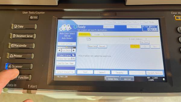 · Top automatic document feeder (ADF) plus a side feeder (“duplex side feeder”), makes it easy to feed multi-page originals.