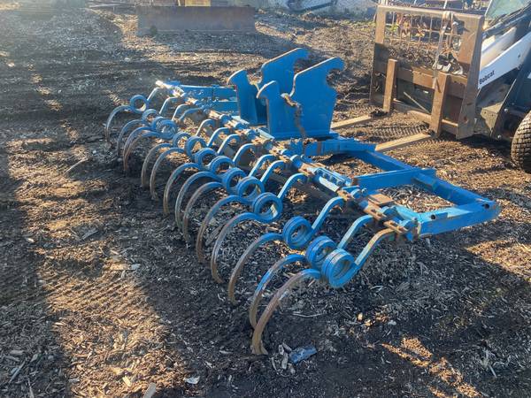 #343 – Root Rake 10 ft Ford Cultivator made into a root rake. 3 pth with cat 2 pins or use with EX200 Hitachi Excavator. The spring shanks work very well for this application. Call or text Al @
