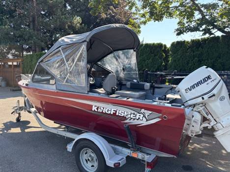 This popular Kingfisher 1625 is ready to go! Purchased in 2019 with 49 hours, has been serviced each year since, and is stored dry in a shop. Has been an extremely enjoyable boat for family lake adventures and accomplished several successful ocean fishing trips, both summer and winter! Motor is in top shape and runs very quiet, is used very effectively for trolling (quieter than a 9.9 kicker motor)