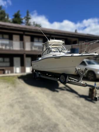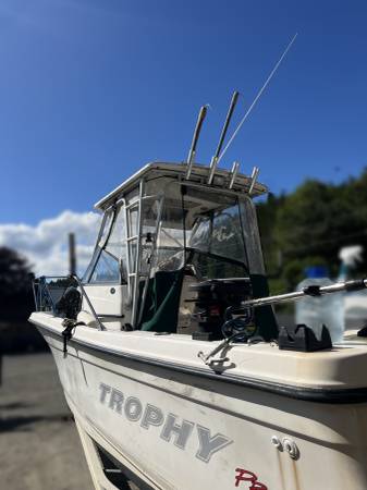 This Trophy is a cutting edge sport fishing boat for its era. Features include 2019 Yamaha 300HP with a brand new leg installed 2024 10 hours since install. 9.9 Yamaha kicker four stroke / 10 hours, both engines routinely serviced. Down inside the cuddy cabin… a roomy storage space below deck level or can be reverted into a single cabin for overnight guest. All the comforts of roughing it away from home sportingly designed in this ready to go island sport fishing / private echo exploring. Located in Haida Gwaii, will deliver.