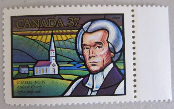 6) $.37 Charles Inglis Anglican Church (Charles Inglis was born in Ireland in 1734. He emigrated to the American colonies in 1754 where he worked as school master, missionary and rector. A staunch Loyalist, he fled the Colonies for England after the American Revolution. In 1787 he was consecrated Anglican Bishop of Nova Scotia to reward his loyalty and service.)