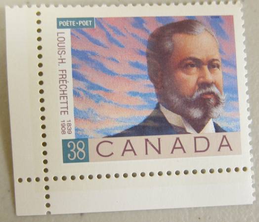 14) $.38 Canadian Poet Louis-H Frechette 1839-1908 (French Canadian's poet laureate, Louis-Honoré Fréchette, was born 150 years ago, and to honour this anniversary Canada Post Corporation issued two se tenant commemorative stamps featuring Fréchette and one of his contemporaries, Archibald Lampman.)