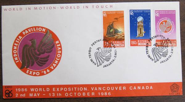 Stamp of Rp 300, - depicting the logo of the Indonesia Pavilion at the Expo'86