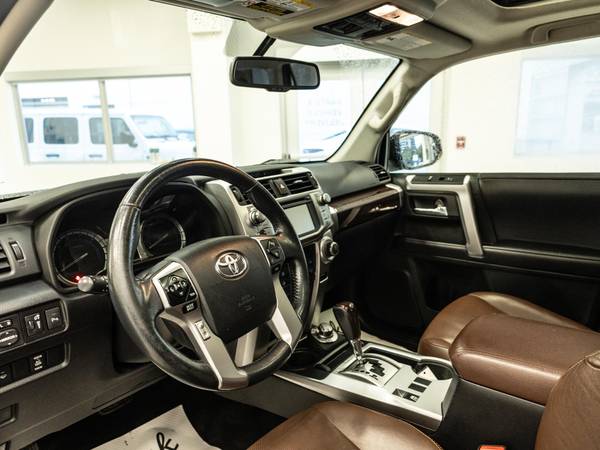 This beautiful Toyota 4Runner was just traded into our dealership. The 4Runner is authentic, and that's part of what makes its rugged style work so well. It's not just an image conjured up for marketing purposes; this truck family has had the same basic wagon shape for years. The window line is high, the proportions are chunky, and the downward slope of the rear pillars are a direct callback to models going back three decades or more. The cabin yields just a bit to passenger-vehicle modernity, but it also keeps it simple and rugged, with big knobs and controls that are simple and uncluttered; you won't find loads of glossy chrome trim here.