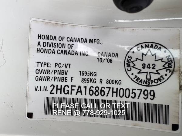 VIN:2HGFA16867H005799
